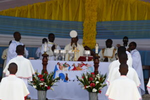 Antoine Cardinal KAMBANDA , Arkiyepiskopi wa Kigali, akaba na Perezida w’inama nkuru y’abepiskopi mu Rwanda , yayoboye igitambo cya missa cyarimo abana bo muri arkidiyoseze ya Kigali bakoze urugendo nyobokamana ku ngoro ya Bikira Mariya i Kibeho.